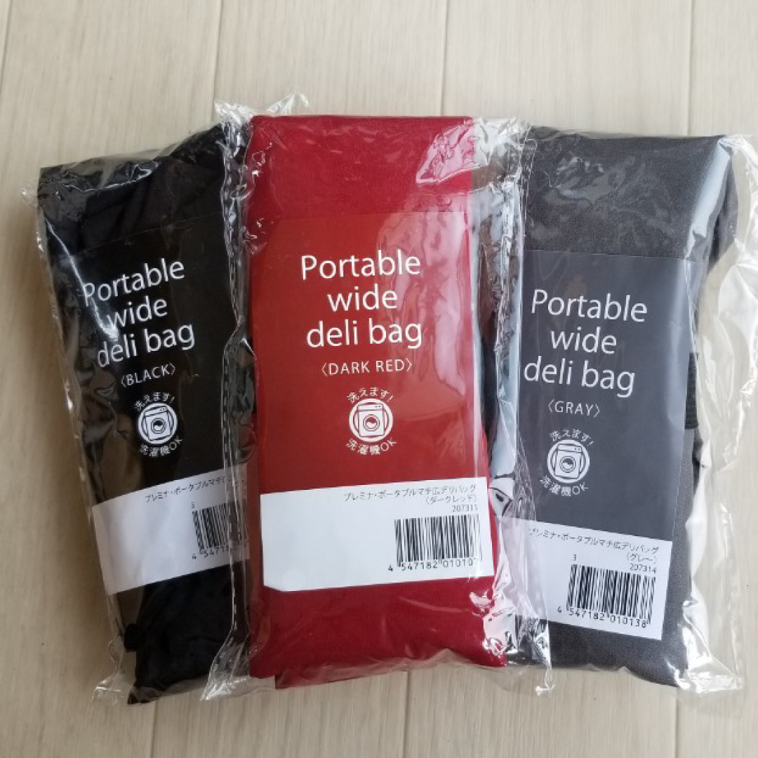マチ広ポータブルエコバッグ(折りたたみ) カラー/ ダークレッド、グレー、ブラック